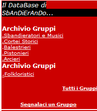 SbAnDiErAnDo.Tk ? il nuovo portale per tutti coloro che sono appassionati di bandiere e folclore. SbAnDiErAnDo.Tk nasce da un' idea di due ragazzi, un musico e una sbandieratore con in comune l'amore per questo sport e per l'informatica, che hanno permesso il pubblicarsi di questo portale. Preferiamo chiamarlo Portale anzich? sito web, perche "Portale di Sbandieratori" indica una una comunit?, molto pi? grande di una comunit? che un sito di un singolo gruppo possa creare.Il nostro progetto e quello di creare un sito che aiuti gli sbandieratori e tutti coloro che svolgono un?attivit? culturale,uno sport lontano dai riflettori a farlo conoscere ad un pubblico sempre pi? vasto, far conoscere Paesi dove ogni giorno si respira l?aria medievale. Potrete trovare nei nostri database i Gruppi Storici affiliati alla nostra community, rievocazioni storiche, risultati dei campionati, gare delle varie categorie e tanto altro ancora?