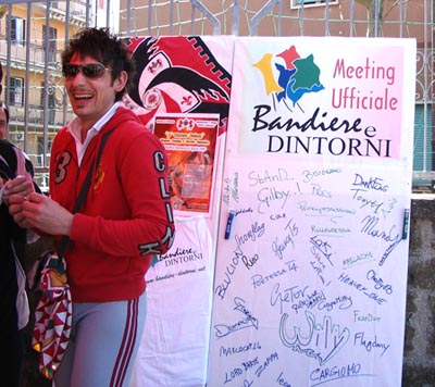 Poi tutti a pranzo? e, dopo aver brindato con del buon vino rosso, tutti al Palazzetto dello Sport per il lungo pomeriggio "bandieraro"?